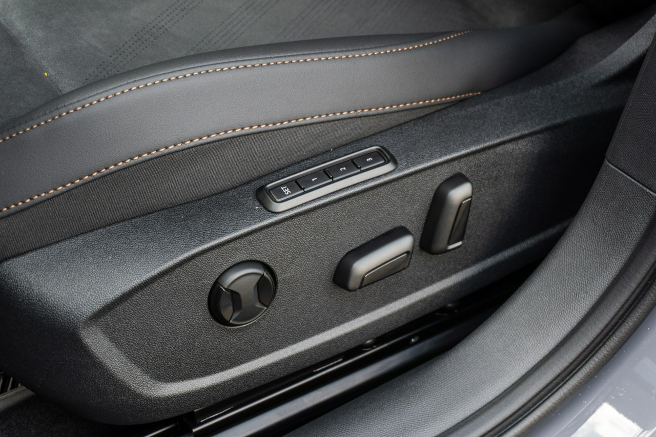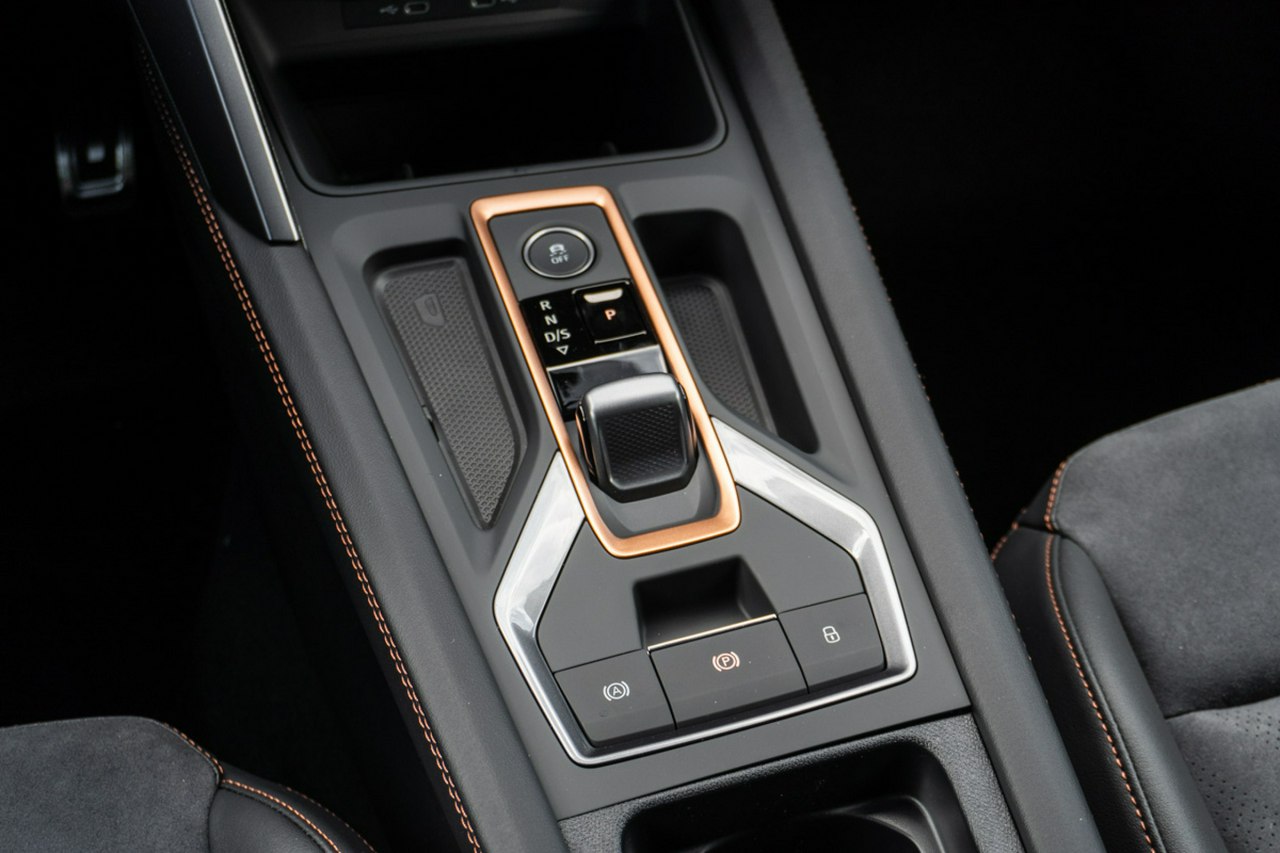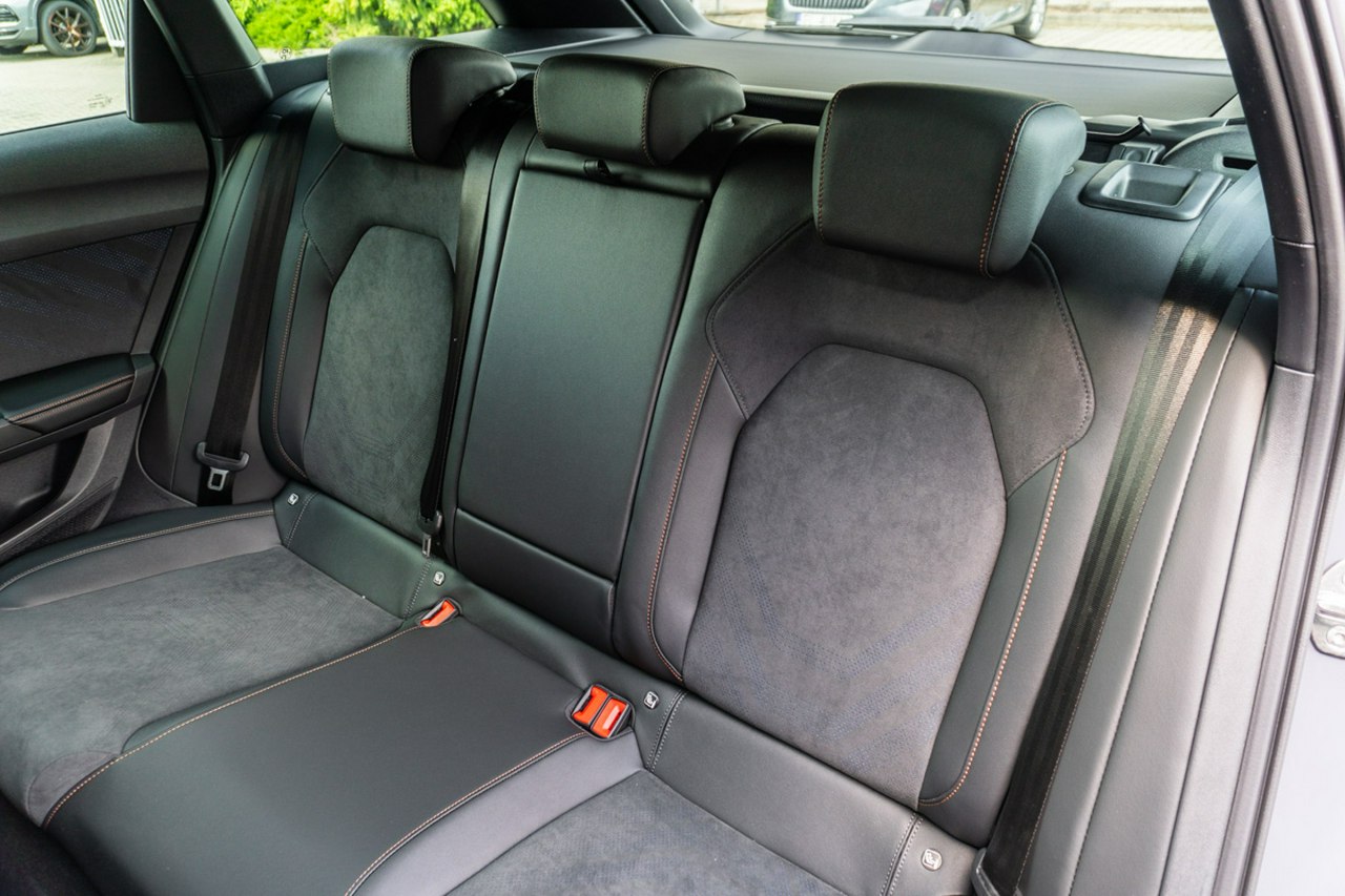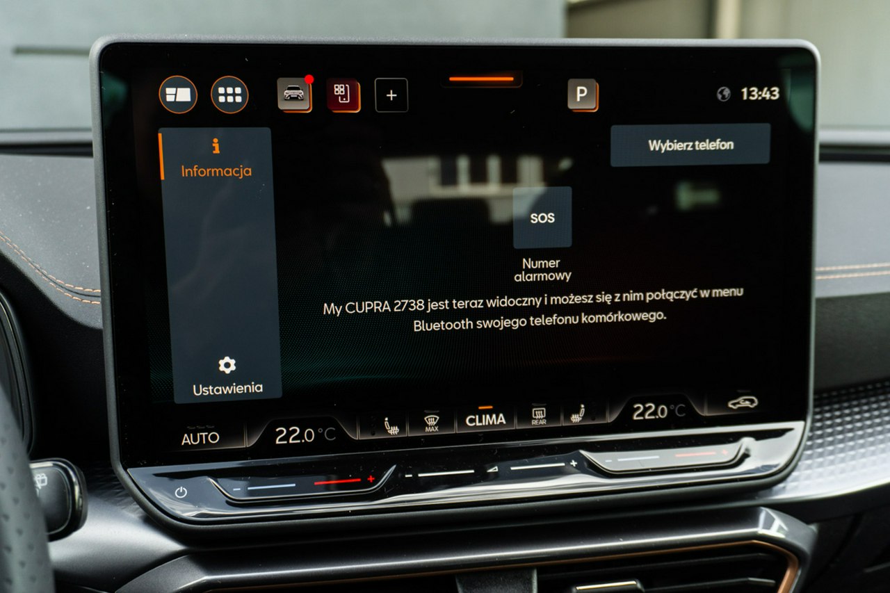 • Sportowa, podgrzewana kierownica wielofunkcyjna z łopatkami obszyta skórą z przyciskiem trybu Cupra i przyciskiem uruchamiania silnika