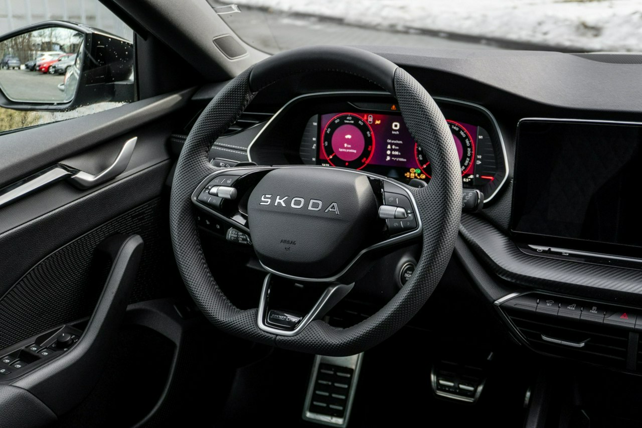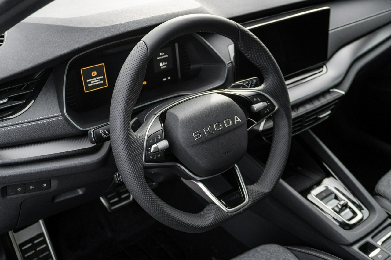• 3-ramienna sportowa skórzana podgrzewana kierownica z manetkami