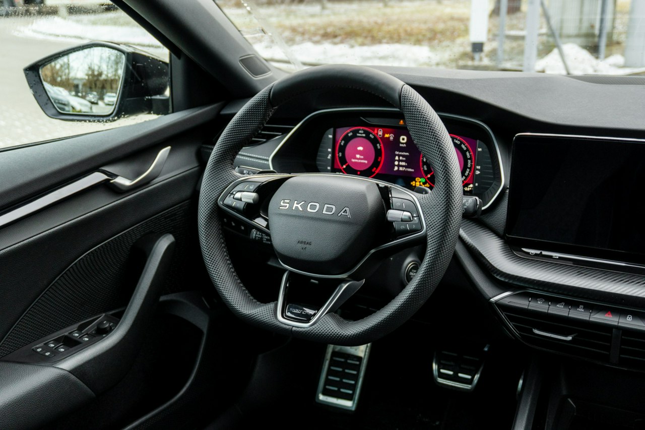 • 3-ramienna sportowa skórzana podgrzewana kierownica z manetkami