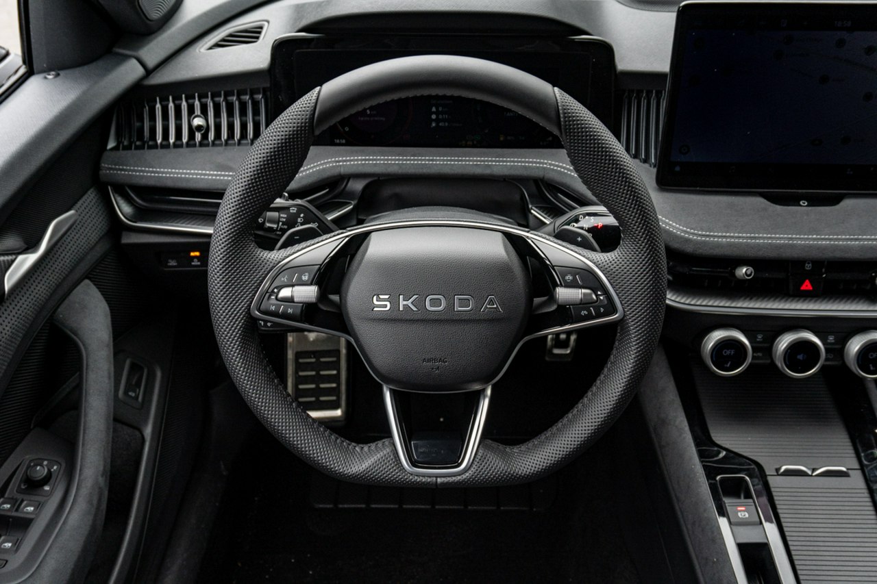 • Sportowa, perforowana, skórzana trójramienna wielofunkcyjna kierownica z manetkami do zmiany biegów