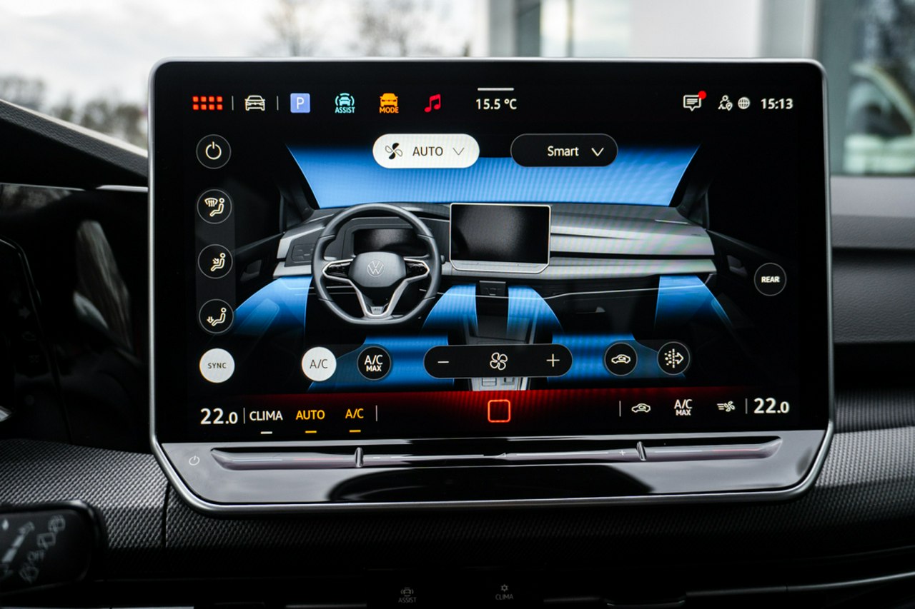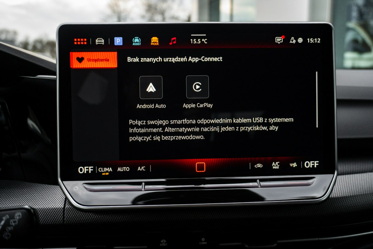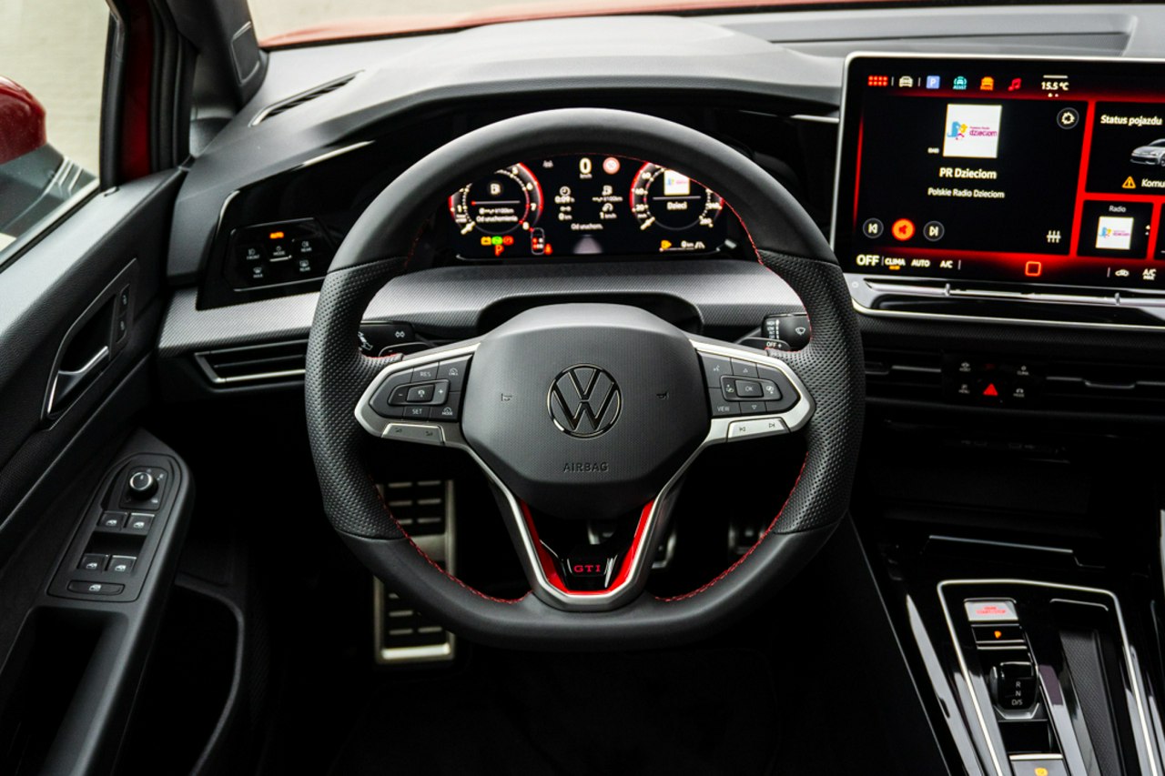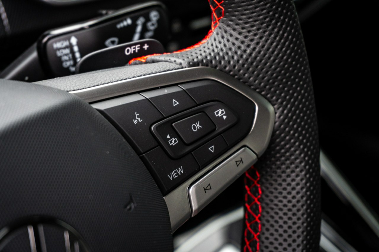 • Sportowa kierownica 3-ramienna, multifunkcyjna, obszyta skórą, podgrzewana, z łopatkami do zm. biegów