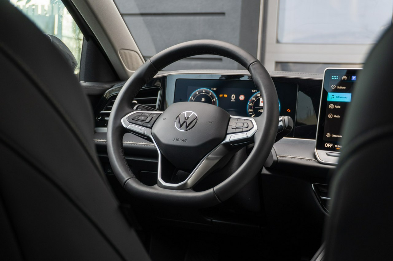 • Wielofunkcyjna kierownica obszyta skórą z łopatkami zmiany biegów