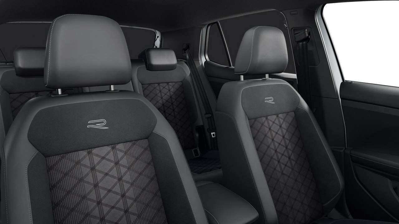 • Środkowe panele siedzeń przednich i zewnętrznych tylnych obszyte tkaniną "R-Line"